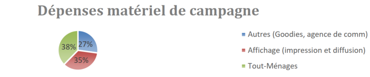 Concernant les charges, c’est le matériel de campagne classique, soit l’affichage, le tout-ménages, ainsi que les frais de l’agence de communication et du matériel de stand qui représente la part la plus importante des charges, soit le 75 %.